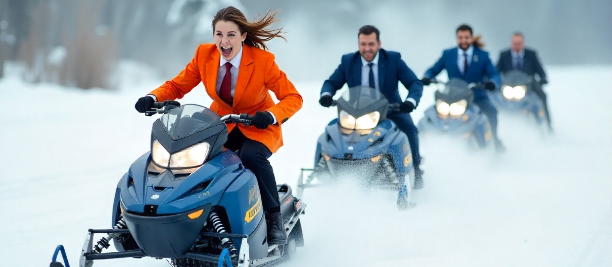 Командный квест с передвижением на снегоходах и квадроциклах: участники получают карту и подсказки, проходят испытания, решают загадки, соревнуются на скорость и смекалку.